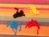 赤ちゃんのうちはくさりを手で触って紐とは違う触感を楽しんだり、お口で確かめてみたり、おままごとをする年頃になるとごはんにしたり卵にしたりと見立ててお料理を楽しみます。小さなペットボトルに入れて見ようとしたり、並べて比べてみたり、首から下げてネックレスにしてみたりetc・・・