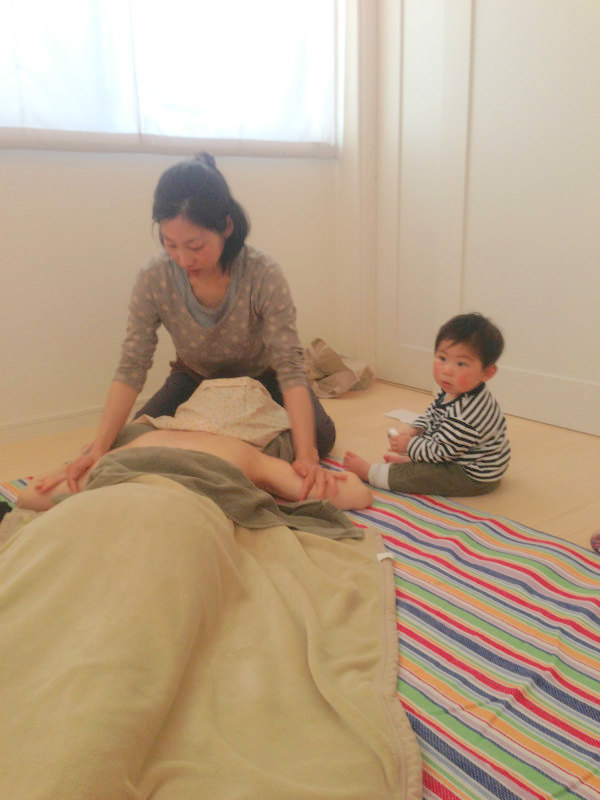 セラピストさんの赤ちゃんも施術を受けている方の赤ちゃんもママのそばでのんびりしながらマッサージが受けれます。