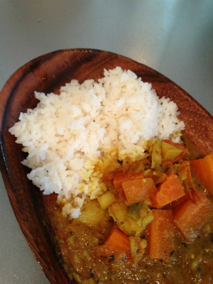 アーユルヴェーダ医とアーシュラムの食事はベジタリアンで、基本的には肉と魚と卵は使わず、玉ねぎにんにくなど香りの強い野菜は使わないそうです。辛さもないマイルドな味です。
