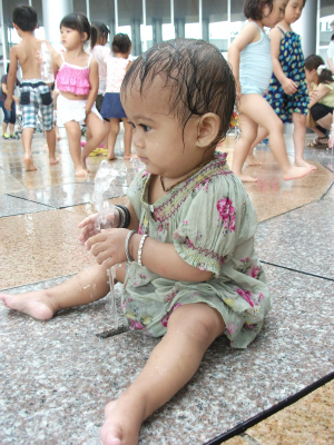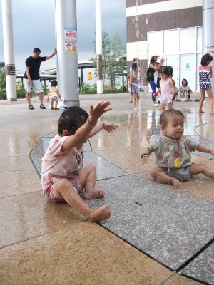 巨大ショッピングモールを楽しんでもらったり、噴水広場で水遊びをさせてあげたり。